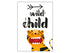 Kinder-Poster mit der Aufschrift „wild child“ im wilden Look. Unter der Aufschrift ist ein kleiner Tiger in Orange und Schwarz mit weit aufgerissenem Maul. Über der Schrift ist ein Pfeil. Als Dekoration im Zimmer deines kleinen „wild child“ ein gelungener Hingucker.